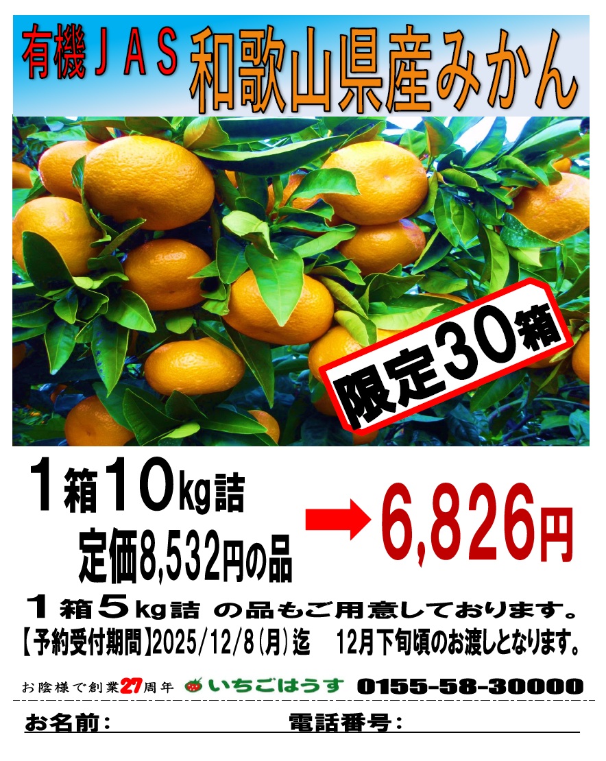 2025年12月 有機JAS和歌山県産みかん